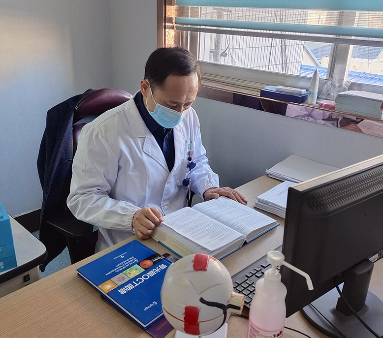 楊愛民深知,眼睛雖小,前后徑、垂直徑也不過兩三厘米,但它又很大,可以看清世界萬事萬物。因此,他不斷學(xué)習(xí)眼科專業(yè)領(lǐng)域的新知識、新理論,研究臨床眼科理論,熟練掌握了眼科及相關(guān)學(xué)科復(fù)雜、疑難、少見疾病的診斷和治療,尤其對青光眼、白內(nèi)障、玻璃體視網(wǎng)膜疾病和小兒斜弱視的診療,有著十分豐富的臨床經(jīng)驗,擅長開展各種復(fù)雜白內(nèi)障超聲乳化手術(shù)和難治性青光眼引流管(閥)植入術(shù)、羊膜移植術(shù)等。