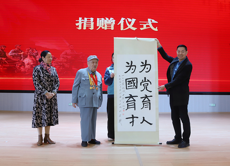 隨后,中國新四軍研究會(huì)向該校捐贈(zèng)紅色書籍,丁位西老人揮毫潑墨捐贈(zèng)書法作品,傳遞革命前輩的殷切期望。